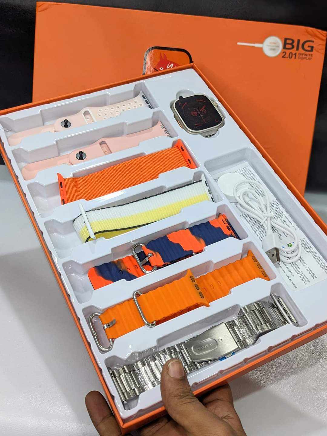 এই কম্বতে আপনারা পাচ্ছেন ৭ জোড়া বেল্ট যেখানে থাকছে মেটাল বেল্ট, লেদার বেল্ট, কটন & সিলিকন স্ট্র্যাপ। সেই সাথে পাচ্ছেন Always on display, Real Scroo, Waterproof সহ Strap Lock ফিচার্স।