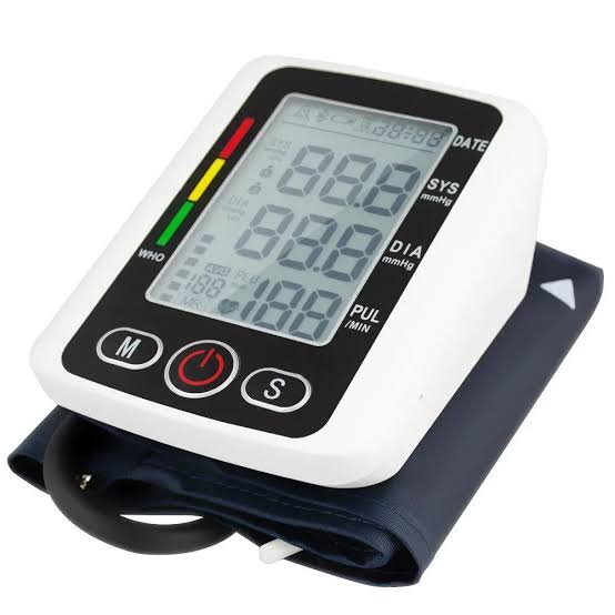 • The Veridian Healthcare automatic digital blood pressure monitor includes a monitor with an attached wrist cuff, a storage case, and 2AAA batteries.